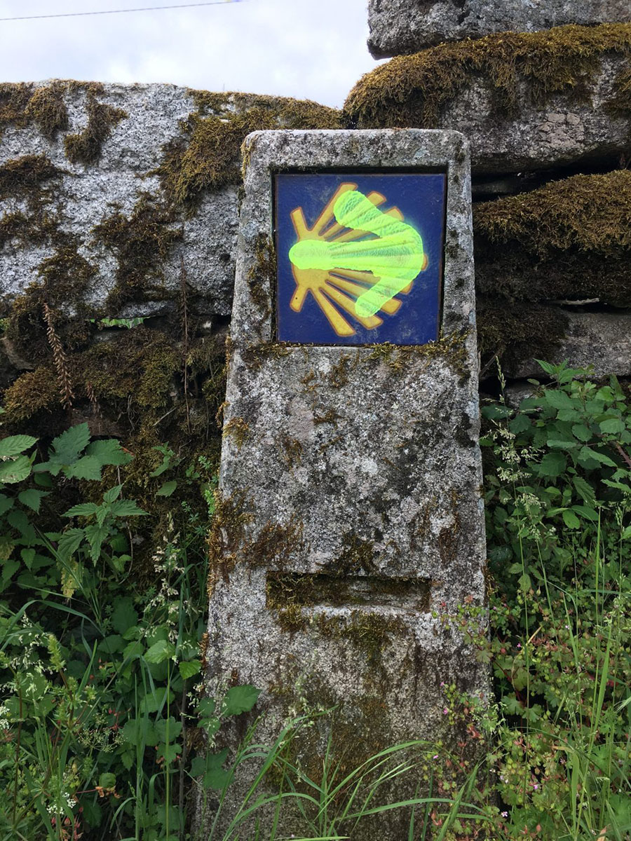 Today is also special – we are halfway through our journey to the cathedral in Santiago de Compostela. The border between Asturias and Galicia has been crossed. The two regions don’t agree on the camino route indicators – the famous scallop shell: In Asturias the scallop shell’s center is the cathedral and the rays symbolize the many ways toward it. In Galicia the scallop shell faces the opposite way and seems more like a hand, showing where you are and its fingers kindly guiding you toward the cathedral. This all reminds me, that we don’t see things the same way. And walking in other people’s shoes is worthwhile.