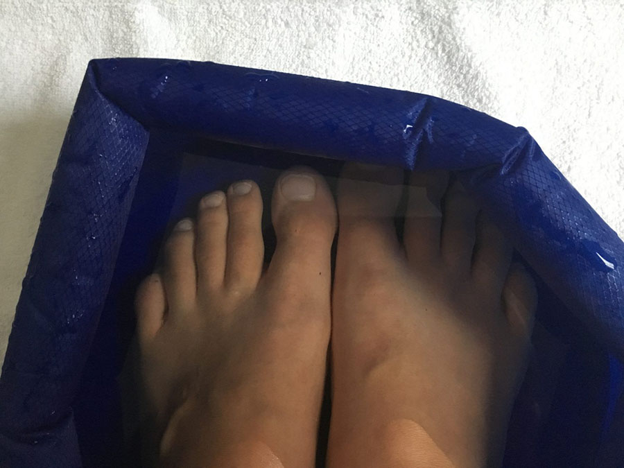 • I choose my footwear carefully from home: Either boots or trekking sandals. If the weather gets too hot for boots, I take them off to ventilate my feet as often as possible. If the weather gets too cold for sandals, I wear socks in my sandals.