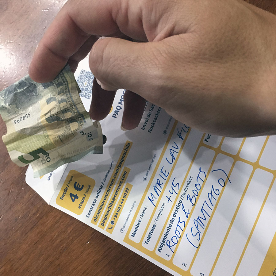 The Spanish postal services, Correos, began this service. There are several smaller providers as well – you easily find information about the providers at the albergues. On Camino Portugués tuitrans.com is one of the most used companies.