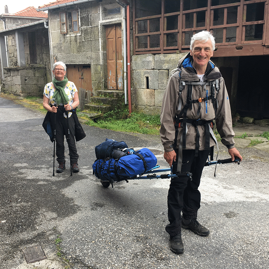 A trolley is an alternative for backpack transport. This French couple are in their seventies, and they have walked the camino for 14 years with their Carrix trolley. It is super flexible and durable. It carries 2 x 10 kilos. A good alternative, if you need less strain on your back, but want to be free of bagage transport arrangements.
