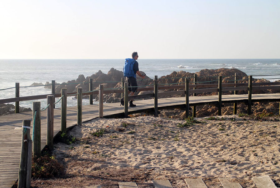 I had read several places that there was a stressful and crowded traffic out of Porto, so we chose the alternate route out of Porto described in John Brierley’s guide. It goes along the river Douro via Matosinhos (a tourist town) and further out onto the Atlantic coast down the Costa route. Beautiful and warm but also monotonous with kilometer long board walks.