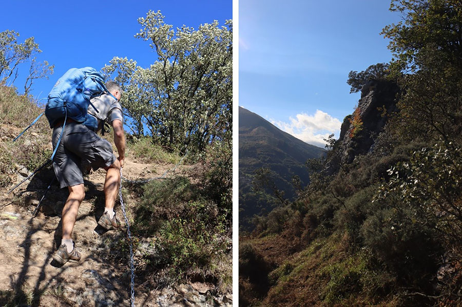 Being curious and adventurous, we chose the challenging new route. The first two kms are easy peasy, put after that the path becomes steep – at one point so steep, there is a chain rope to help you up: