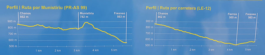 The route to the left goes directly to the hamlet of San Miguel surpassing Pajares. If you take the left route, there is an option to cross over to Pajares later but some pilgrims miss that turn.