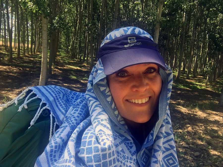 I was really pleased to have my sun visor with me. Sun glasses can be irritating when you walk. And for an extra layer of protection for my shoulders I put my Turkish towel on the sun visor making me look like more like a Bedouin than a pilgrim. My own place in the shadow. My husband Torben wore ultrathin outdoor shirts and a thin cap.