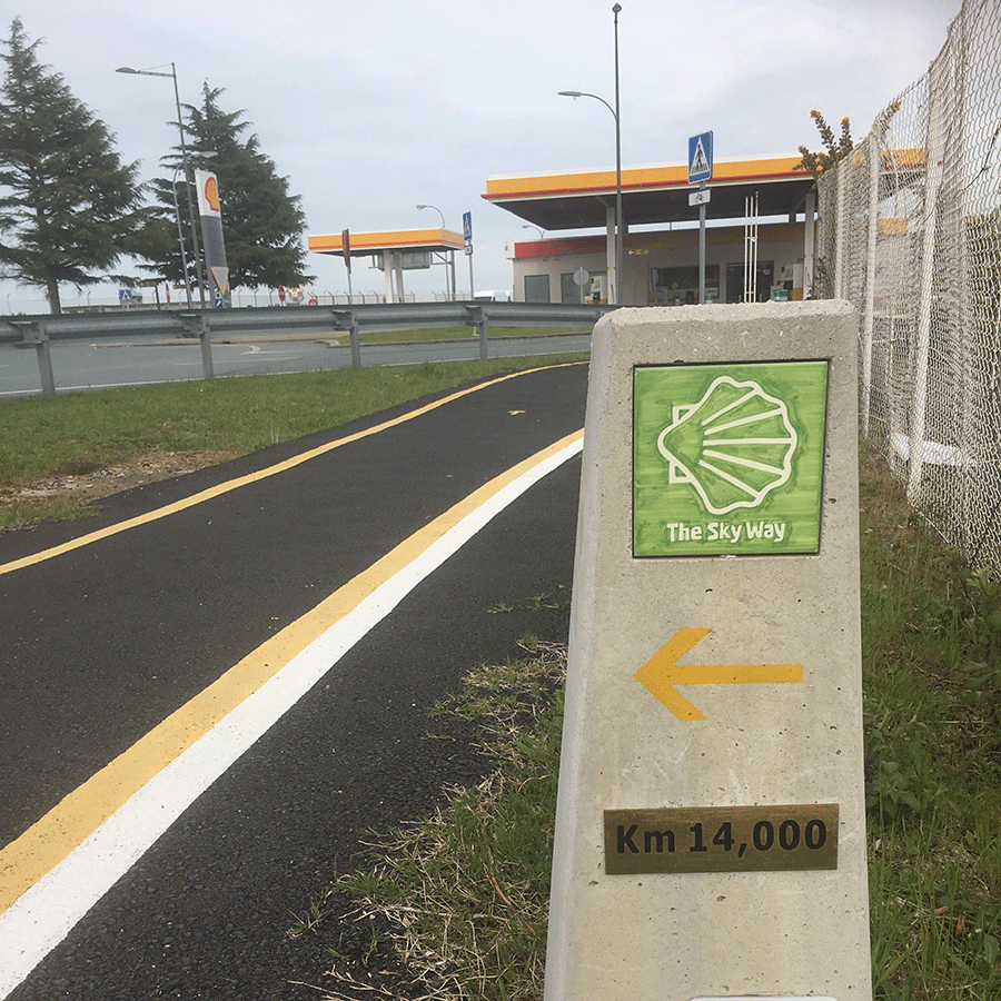 Both The Sky Way and the French route are signposted towards the cathedral but not in the opposite direction. If you are heading for the airport, an app with an online map is a great help – check out Wiselys app for Camino Francés. We planned four hours for the walk – it could’ve been done in much less.