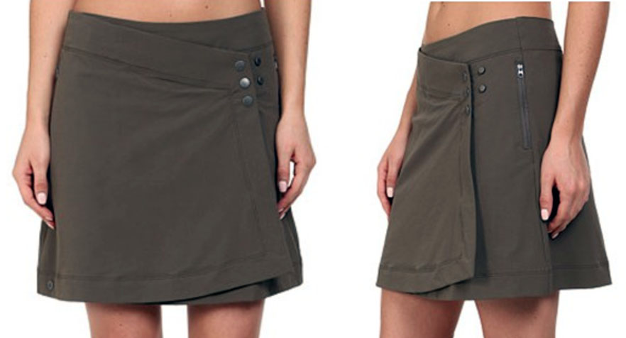 I started out with a beautiful Fjällräven Daloa skirt. But I sold it again because it didn’t have stretch. The skirt I use now is the Ferrosi wrap skirt and can be found at Outdoor Research. It is nothing less than perfect for me. It is a wrap, has pockets and can be worn in two sizes, depending on how much food I have had that day. It is unfortunately not in stock any longer, but you can use the picture for inspiration (and no, it is not me that has such a pretty abdomen).