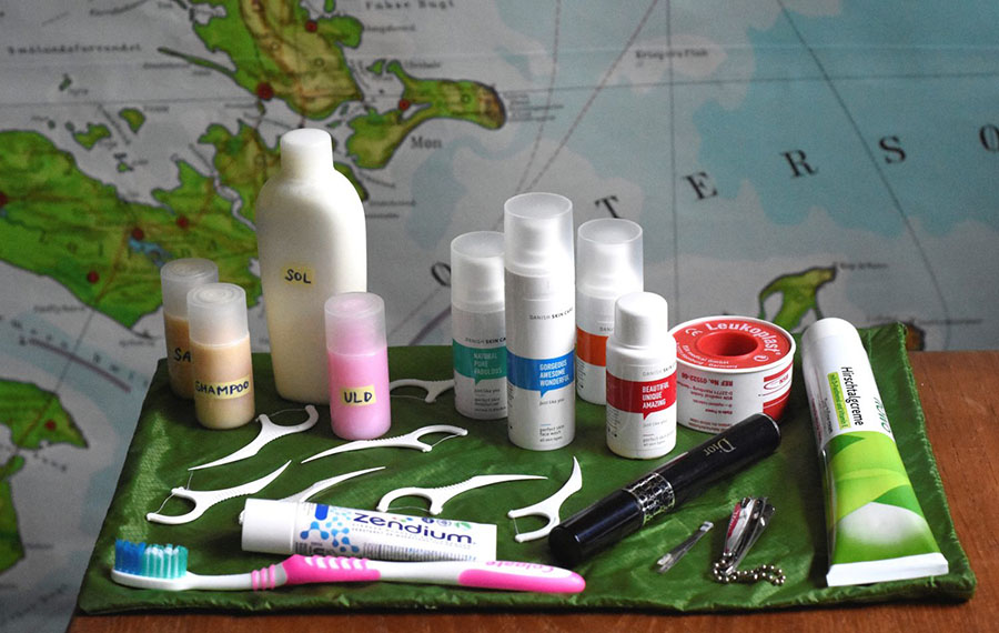 In order to keep the weight of my backpack at a minimum, I pack my toiletries in miniature sizes and supplement along the way if I need to. As long as each entity contains less than 100 ml I can check my backpack in as hand luggage. I’m not so strict about weight any more. I have been so focused on lightweight that I used my foot balm on my face. Now I allow myself the luxury of bringing along the skin products I use at home.