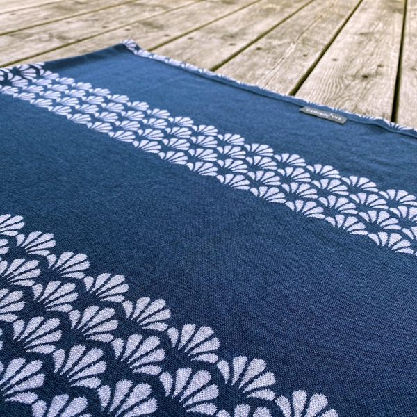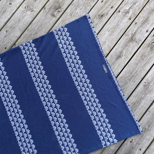 Have you experienced how soft merino wool is? We even sleep in merino wool when on the camino. This merino wool mummy liner os warm enough for the camino if you wear thick merino wool underneath. The pattern is a classic striped pattern made of camino shells – white shells on blue. If you prefer sleeping outdoor, the mummy liner works very well as extra warmth in your sleeping bag.