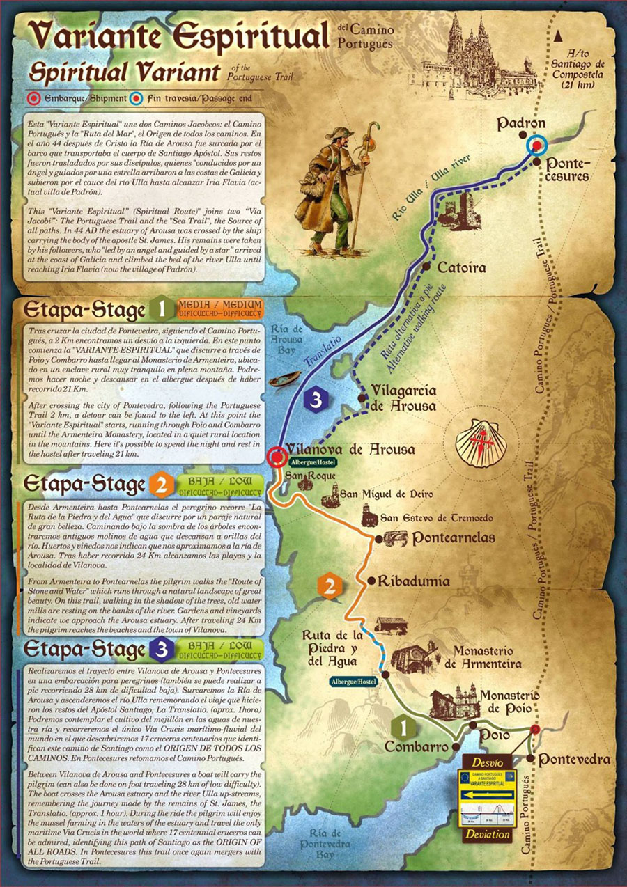 - Distance in total: 282 kms (255 kms, if you take the boat on Variante Espiritual)