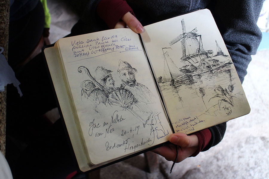While pouring wine for himself and his employees out one sleeve, he pours pilgrim stories out the other. I eat the soup and his stories fully while I thank my lucky stars for all the Spanish I have learnt during the past month while driving from place to place in Denmark. It is wonderful to understand what is being said. I missed out on a lot before.