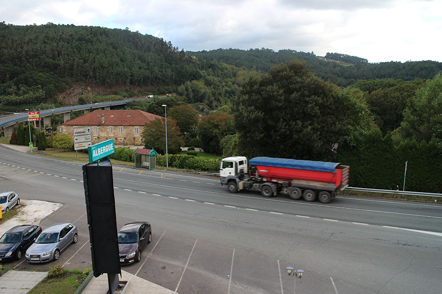 Our room today has clearly been brought forth to me by the camino. Torben and I are both noise sensitive. We take every impression in and feel it deep down inside. We both appreciate beauty and silence – so voilá! Here we are at Ponte Ulla in the midst of some kind of highway crossing. Beside the room costing 37 EUROs, 16-wheelers and cars rush by non-stop and the view is of not 1, not 2, but 3 gas stations. I can’t recall any other place on the camino that lacks as much charm and beauty as this.