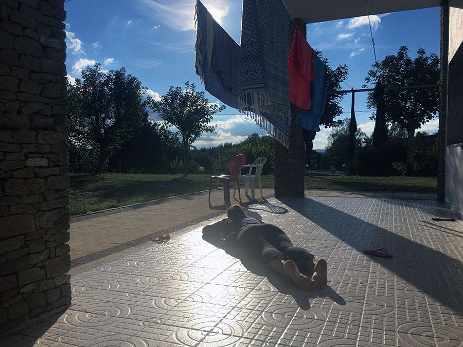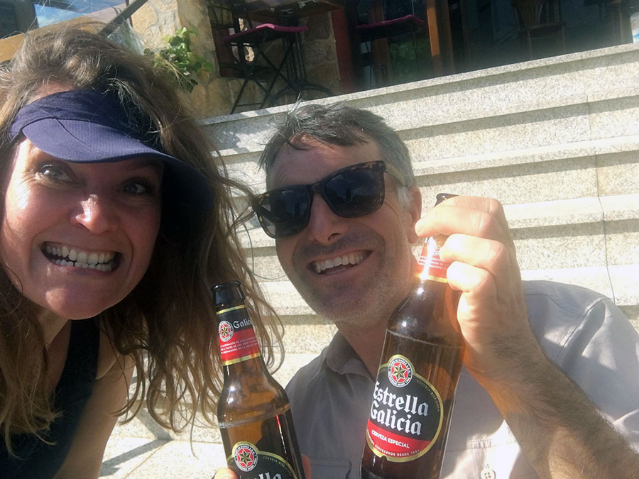 Shortly thereafter we are home again in O Castro de Dozón to spend an evening in the sun and for me… my encounter with an Italian girl with whom I speak well and who also suffers from an injury – an infected Achilles tendon and several blisters. Funny how after a day of walking we are all the same – right now the sun shines on all of us and we all take a break and sit down in it.