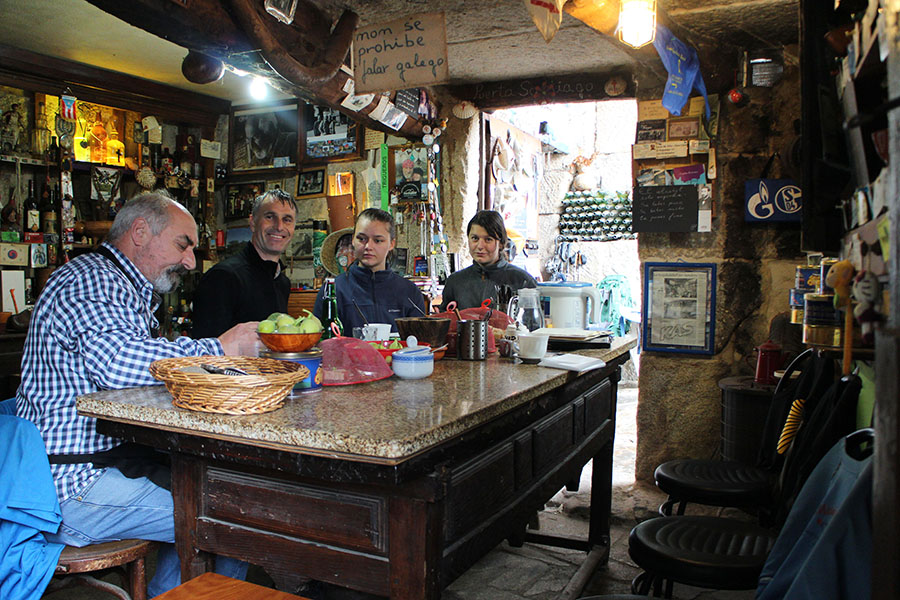 They look back too. Like after a morning of pouring rain and an incline unlike any other just outside Ourense. The girls walk up front. Suddenly they reach a house and turn back toward us. They look at us with questioning eyes and when we reach them, we meet a full-bearded man with an authentic cave behind him, spider webs and memories in every corner. They walk inside steadily with us right behind them.